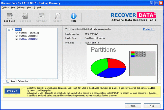 Click 'Next' button to proceed to Step- 3 where Recover data for FAT & NTFS starts scanning the selected drive to restore deleted files and folders OR Click 'Back' Button to go to the previous step to change the disk