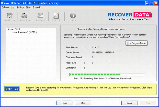 Selecting Hide Progress Details will improve performance of Recover Data for FAT & NTFS Partition. You may return to to view progress details using Show Progress Details.