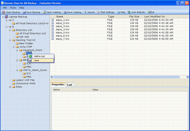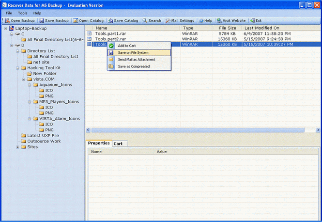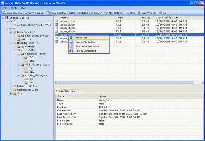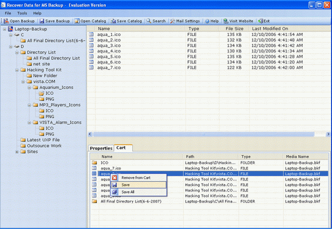 Select files & folders from tree structure or right pane of the windows to save files & folders. Recover Data for MS Backup supports two methods to save files & folders as follows: