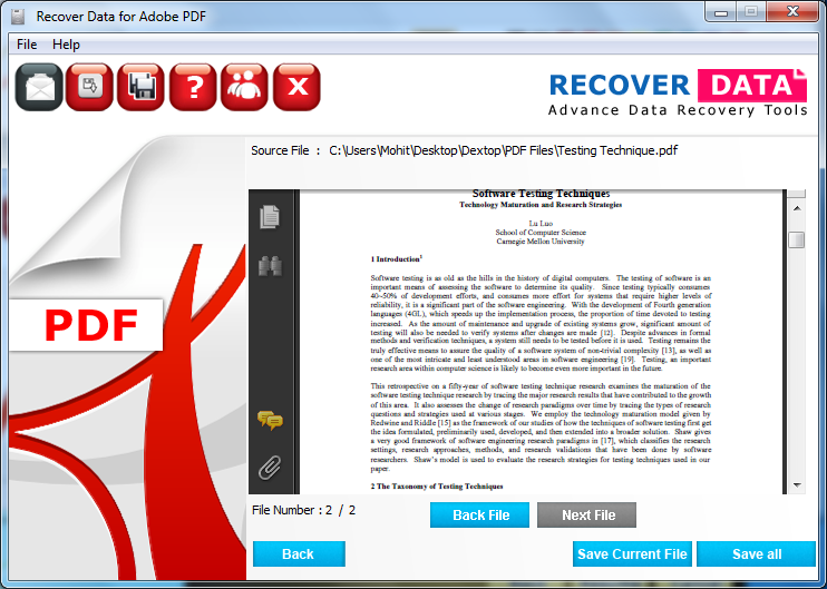 Recover Data for Adobe PDF successfully repair corrupt Adobe PDF files. Software involves following steps: