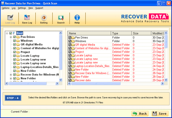 After Complete the Scaning, Recover Data for Pen Drives presents a directory tree of all recovered files/folders as follows: