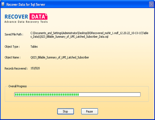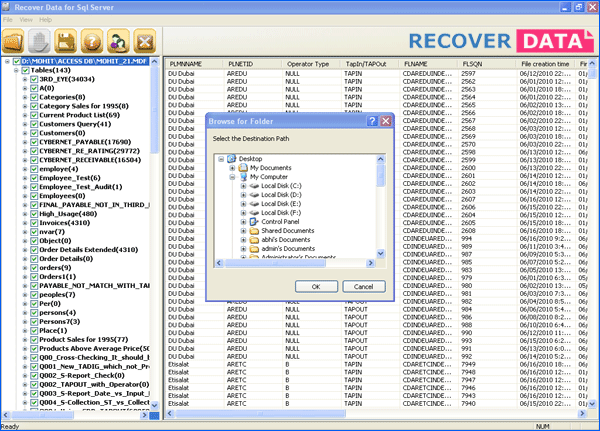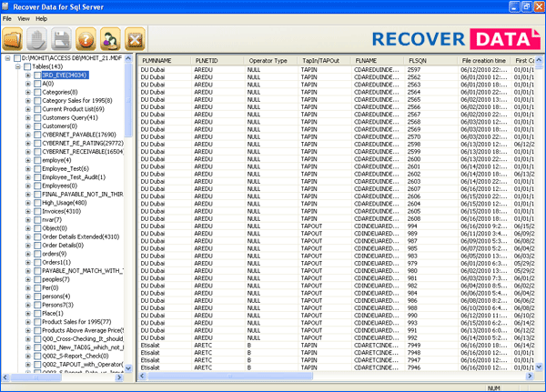 Step - 4 » After recovering the SQL file, software will allow user to preview the content of recovered .MDF files in view dialog window and lists all recoverable tables in a tree view on left pane of view dialog window. You can view content of tables by selecting the particular table in the tree view and see the data that has been recovered on the right pane of the view dialog window.