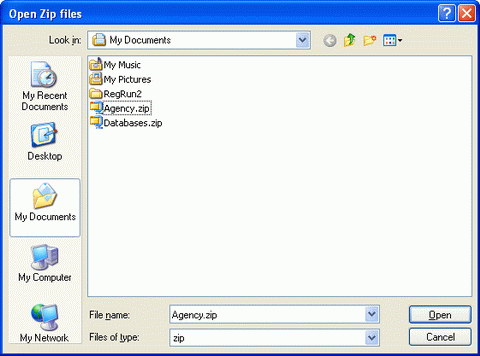 Screenshot - Select Zip files using Browse button from the following screen: