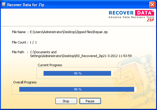 Then Software will start repairing corrupt Zip file as follows: